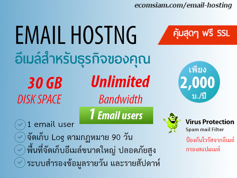 Email Hosting พื้นที่ 30 GB ต่อ 1 Email