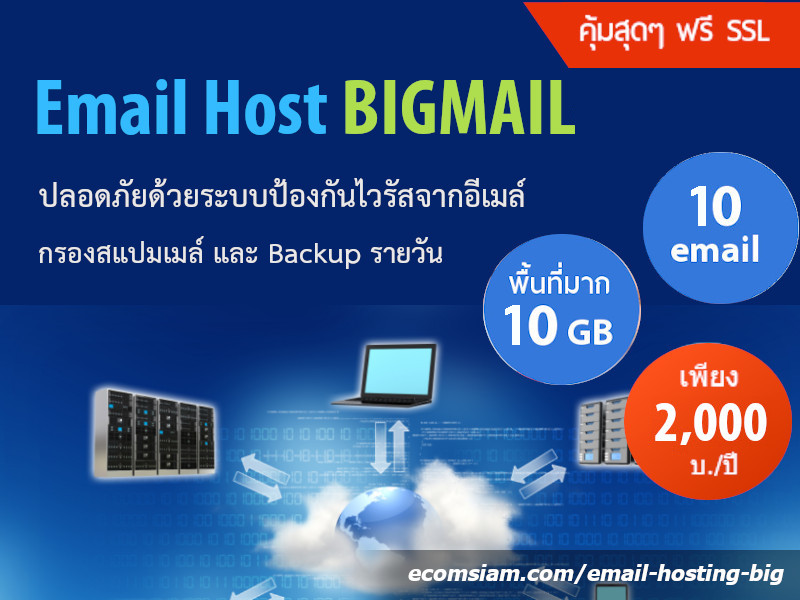 Email hosting Big พื้นที่ 10 GB/10 emails
